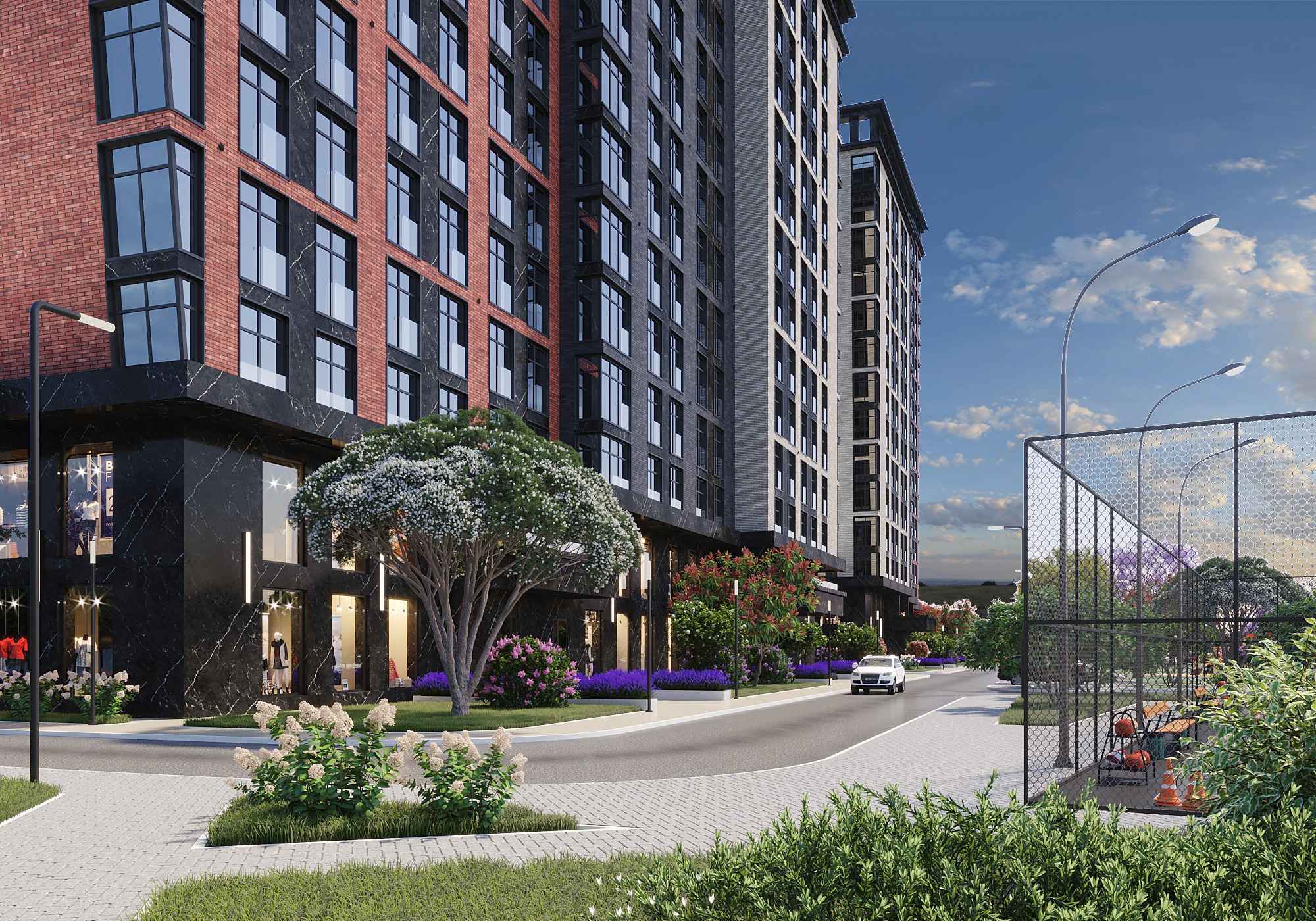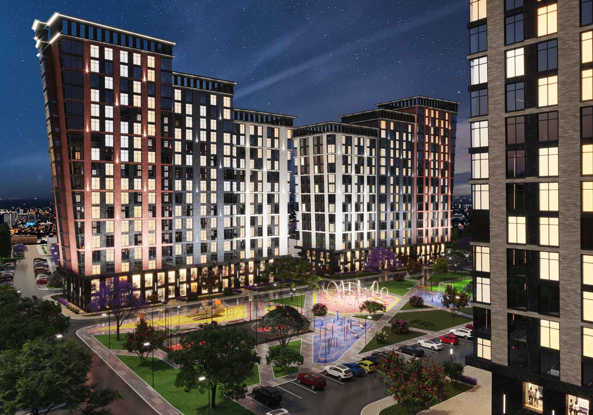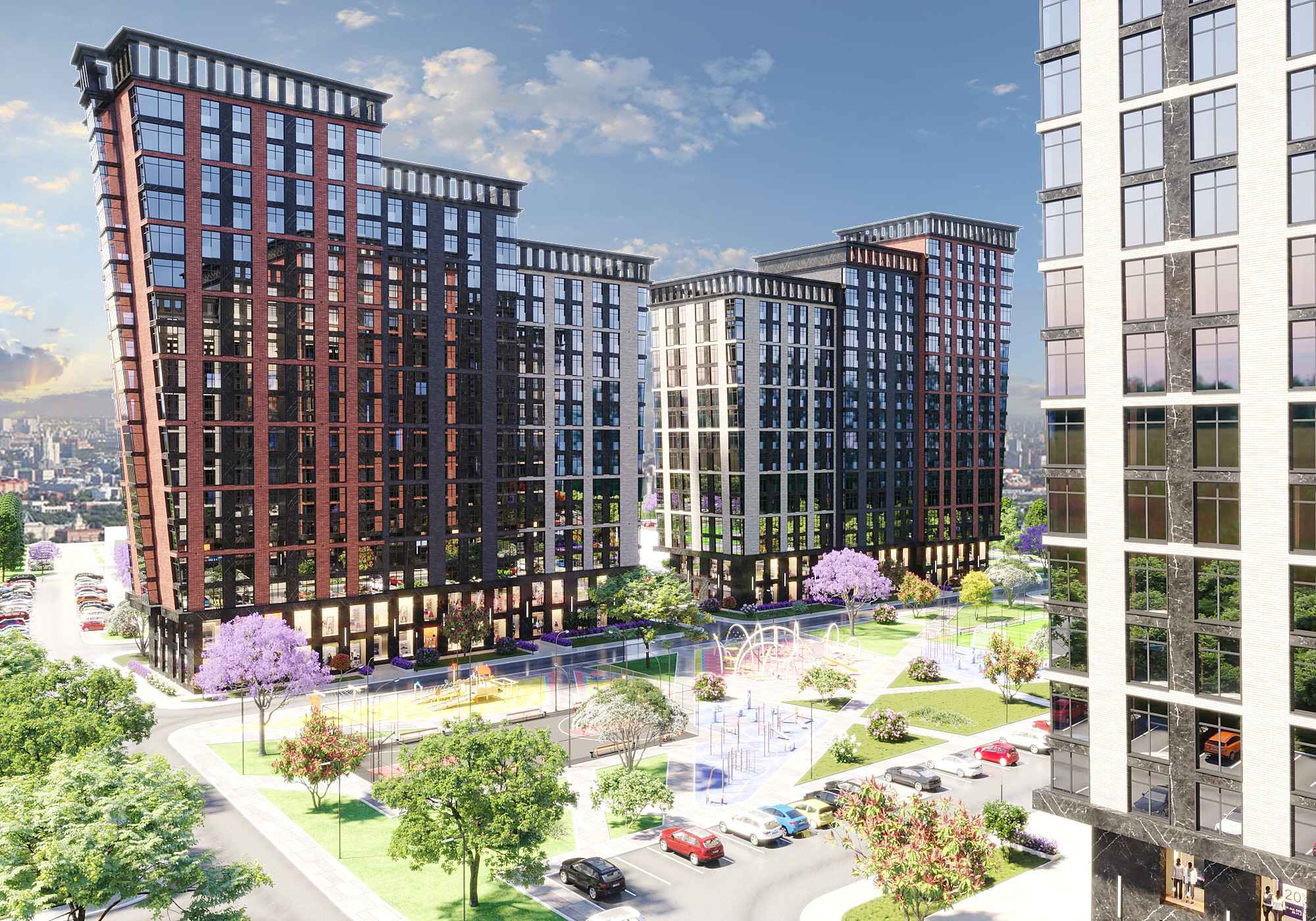 Премиальный жилой комплекс с уникальной архитектурой. ЖК террасного типа включает несколько корпусов переменной этажности. Фасады выполнены в сдержанном стиле.